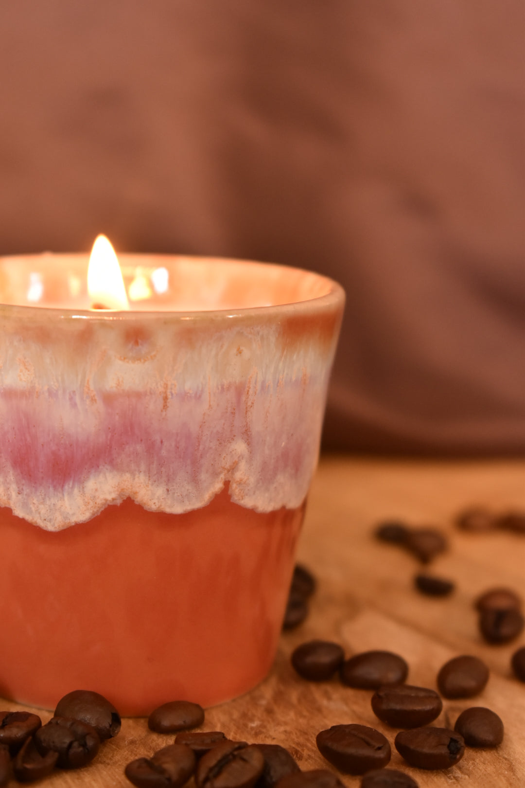 Onze koffiekop kaars is niet alleen een sfeermaker, maar ook een duurzame keuze. Het herbruikbare koffiekopje gaat nog jarenlang mee. Hierdoor geniet je dubbel: eerst van de heerlijke geur en de warme kaarsvlam, daarna van een uniek koffiekopje in je servieskast.